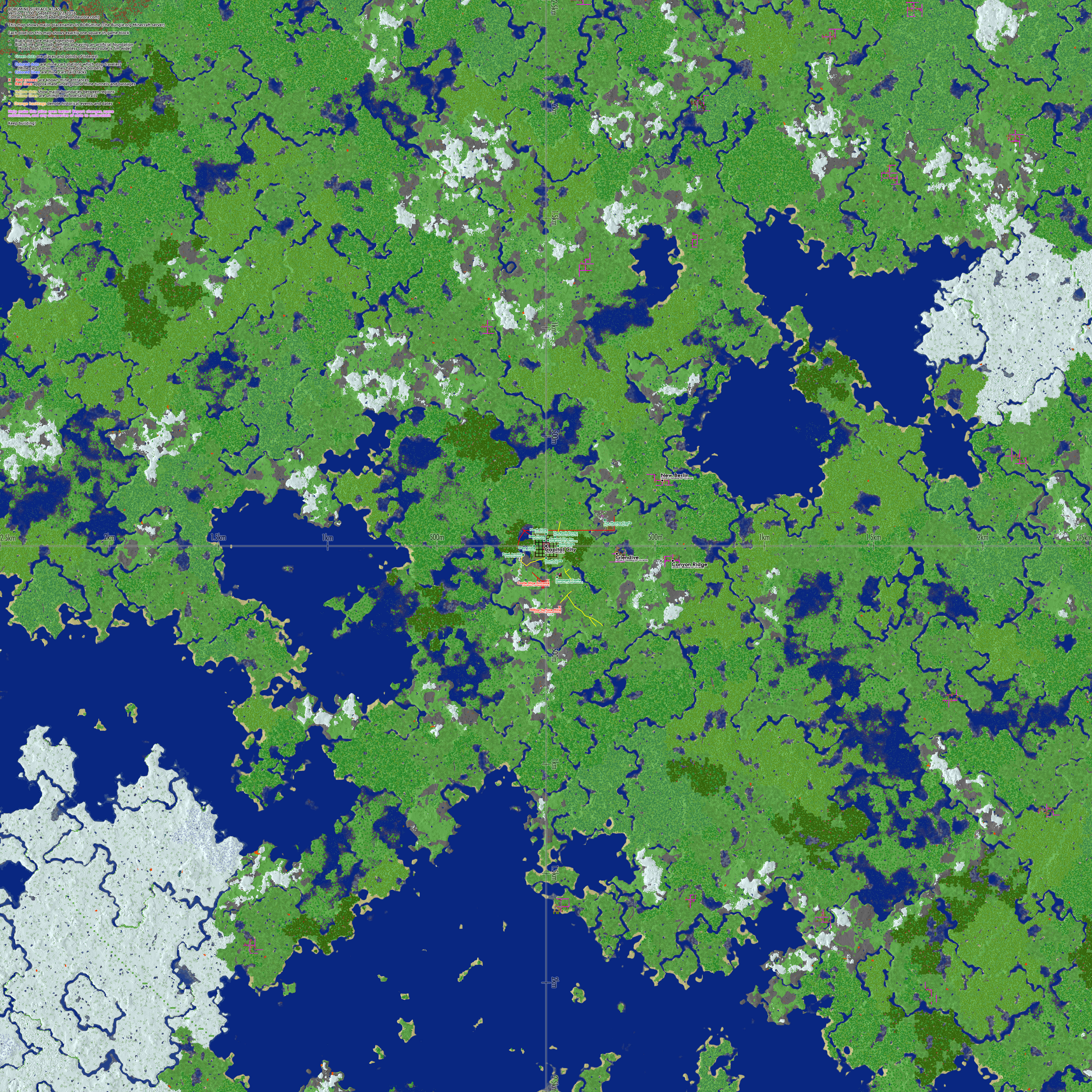 To see a live map of BorgMine, use the server address followed by port 8123 For example, http://serveraddress:8123 Mouse-over the pop-out drawer on the far right of the window to select between unique views of the world |